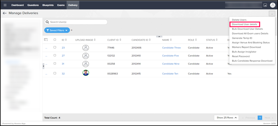 1. Get the candidate login details of the candidate who is facing the issue by using the download user details option.