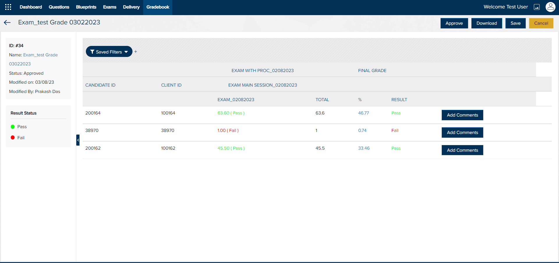 Overall, a gradebook simplifies the process of recording, managing, and analyzing candidate results within a course or curriculum.