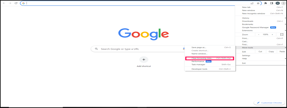 3.Click on the three dots on the top right of the screen> Click on More Tools>Clear Browsing History.