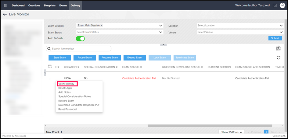 4. Invigilator can manually verify the candidate using the Verify Identity option which is present under the more option in the Live Monitor Page.